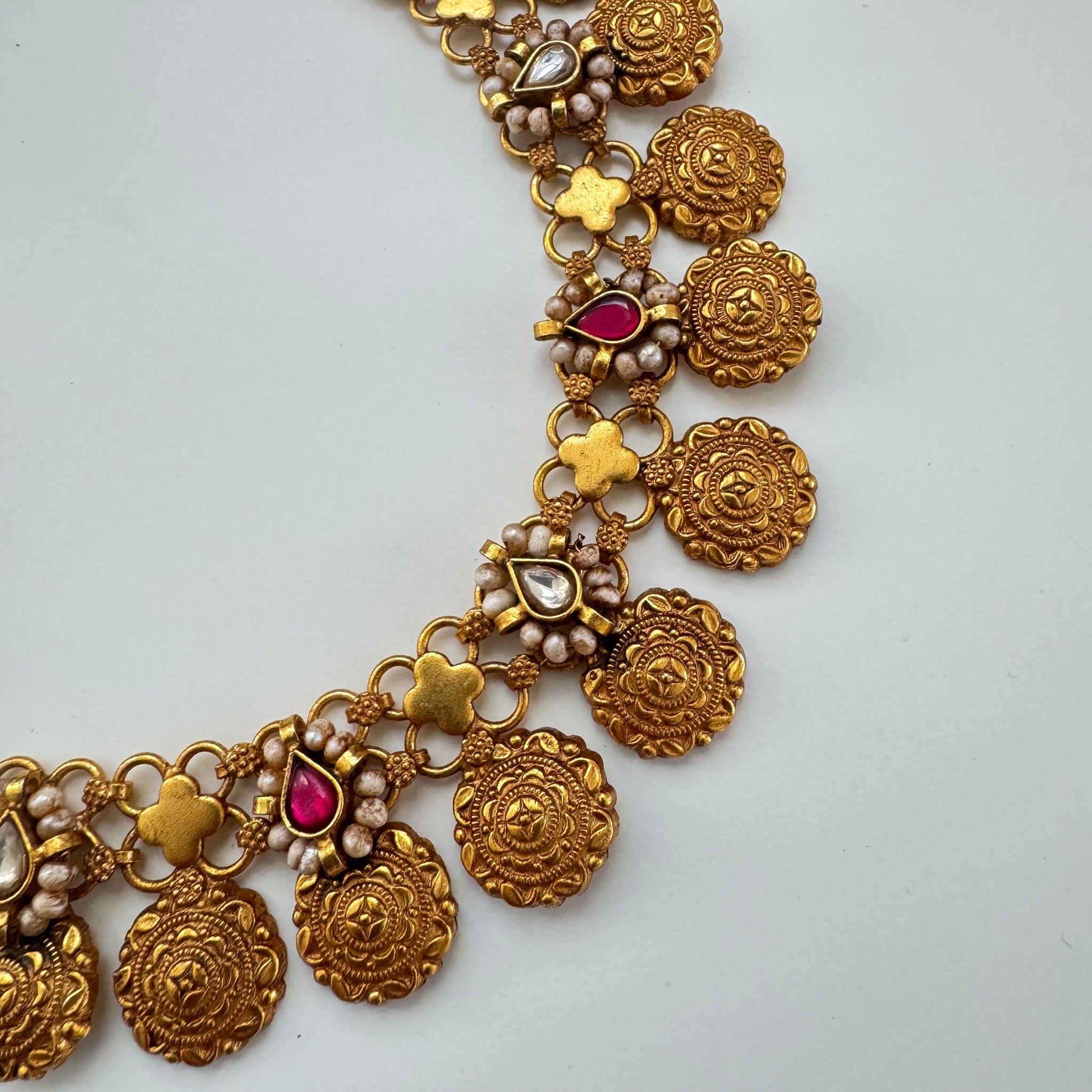 A statement necklace with the most beautiful kundan fusion with pink and white kundan stones