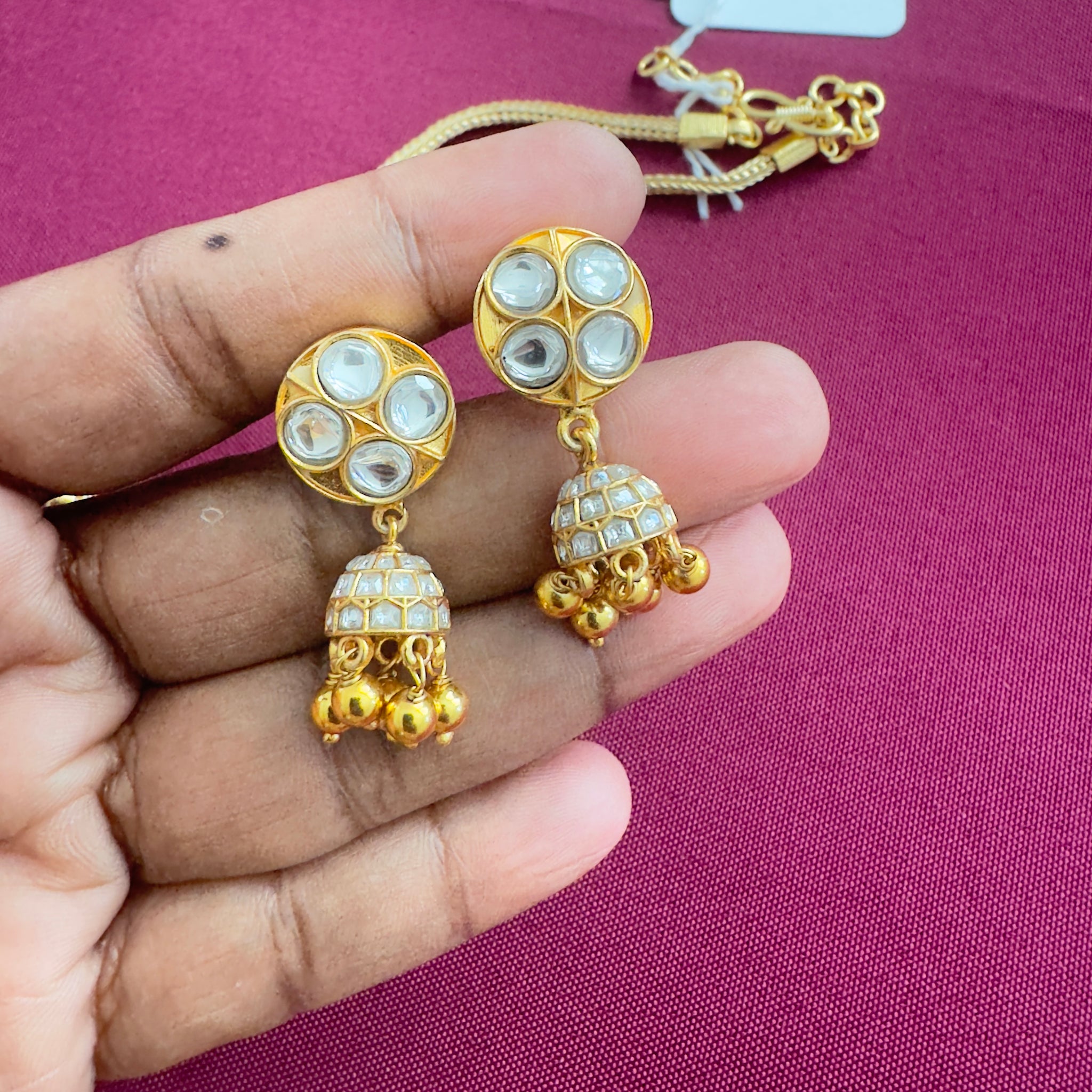 The Elegant Jadau Attigai Necklace set (White)- Deivanai