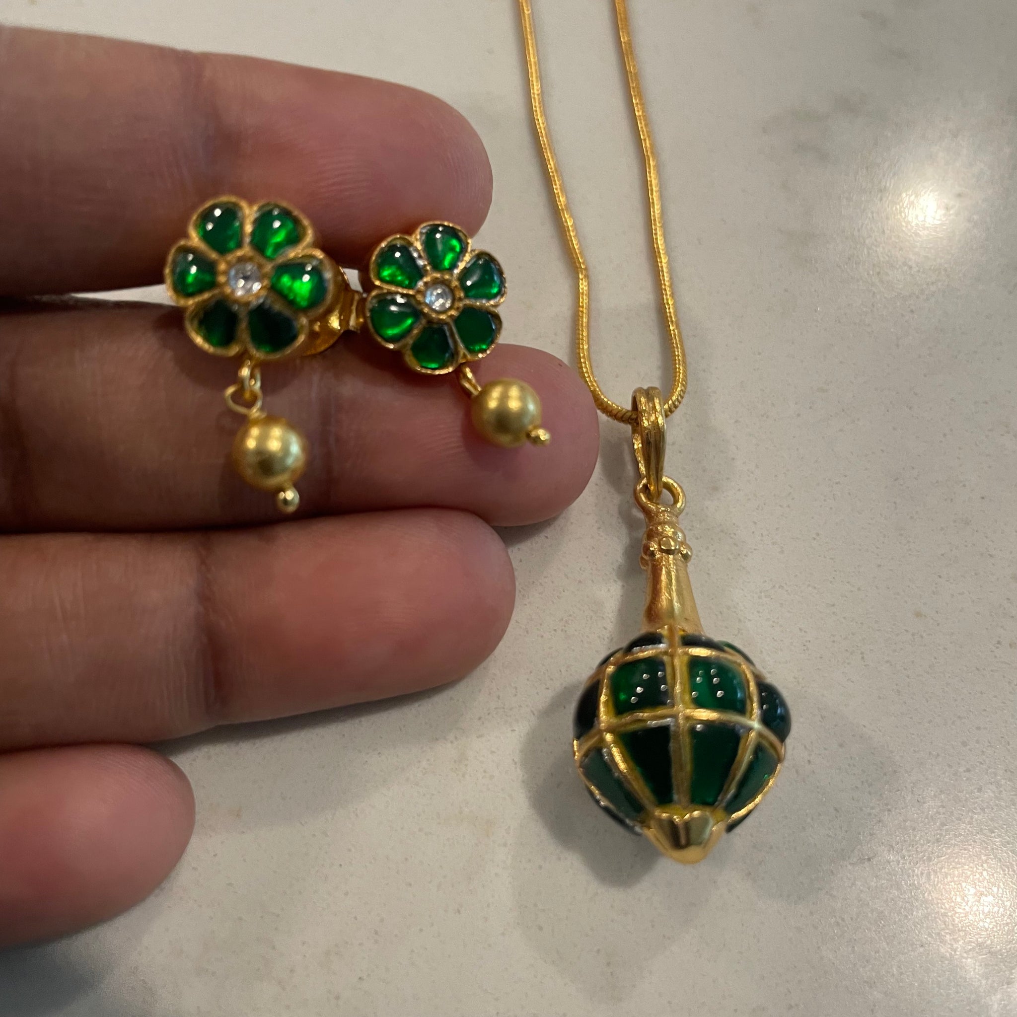 Thw kadayutham is from our mythological books and known to protect from negative energy . Here the pendant comes with chain and earrings