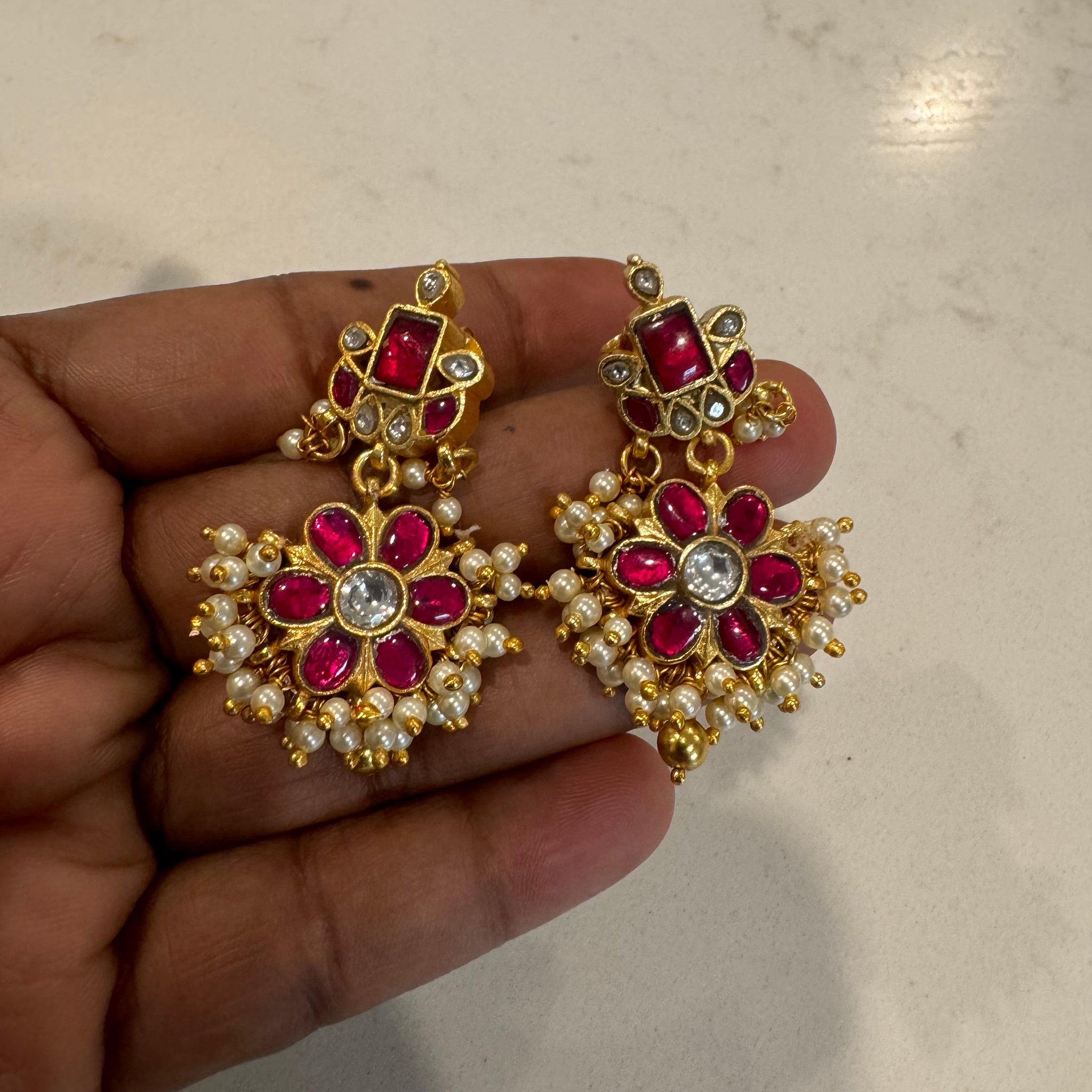 A beautiful kemp earring with cluster pearls in gold finish for your ethnic everyday needs.